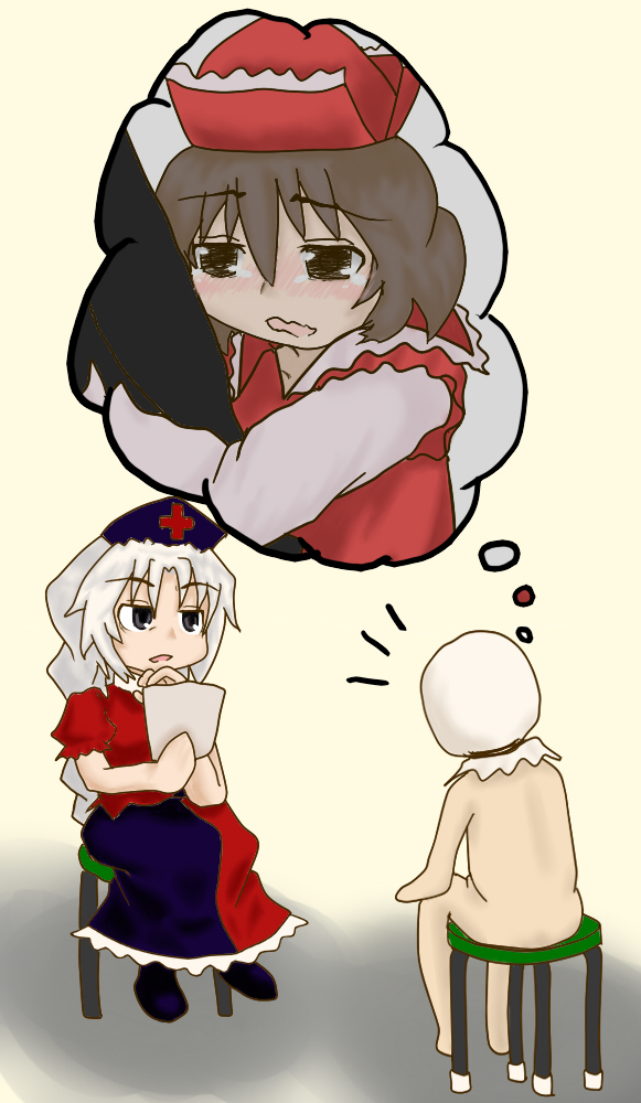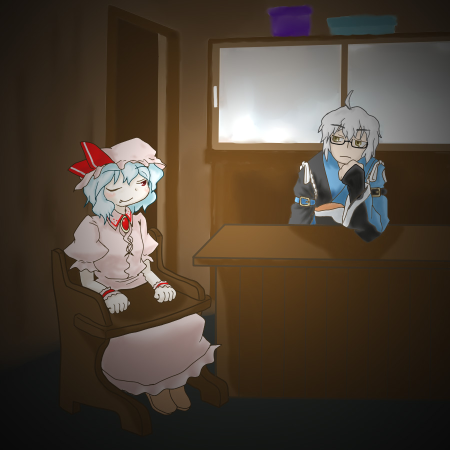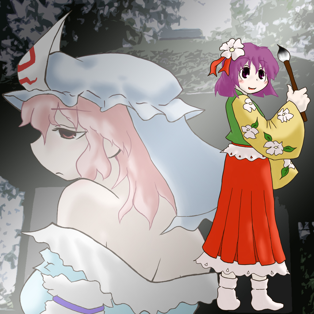 最初はえーりんと相対して座って、冷や汗を流すリリカという構図だったんですが。